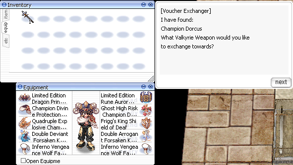 It is critical you heed the NPC's warning and only have the item you want to exchange equipped or in your storage.